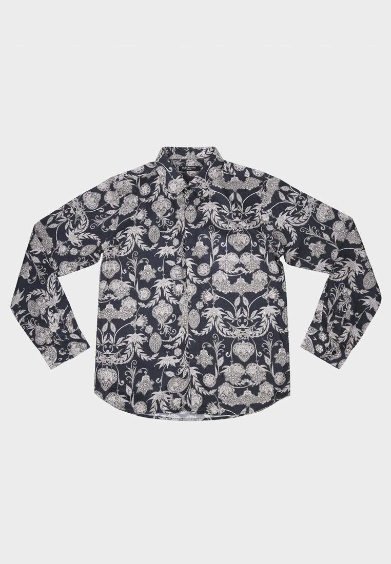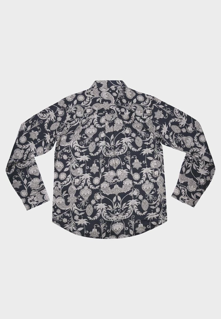 Allover floral printed button down shirt in lightweight fabric.
