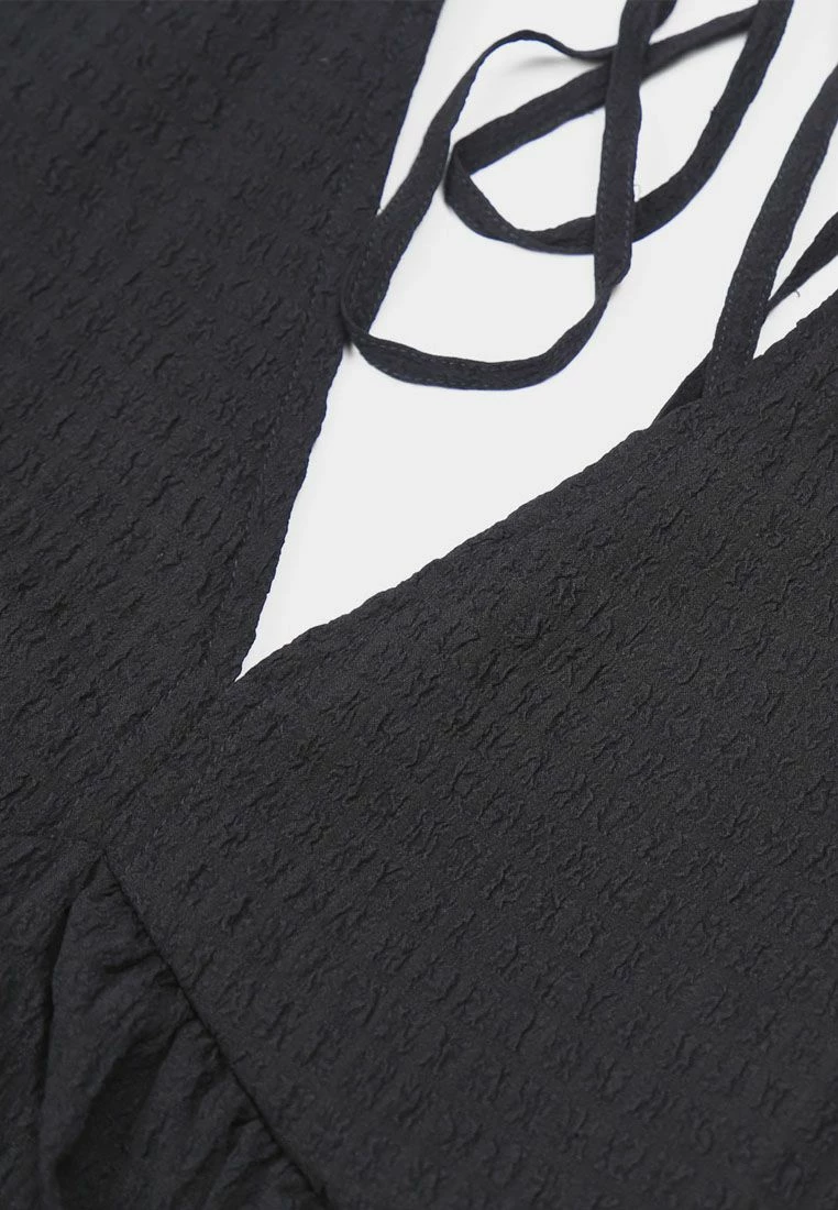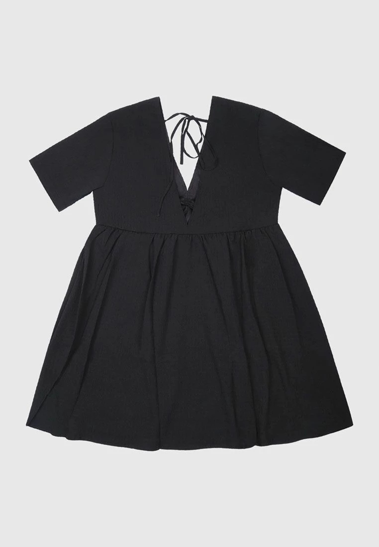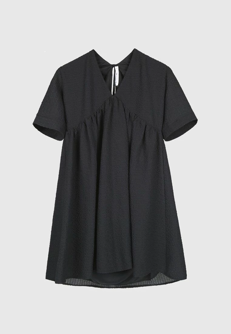 V-neck mini smock dress with cutout back.