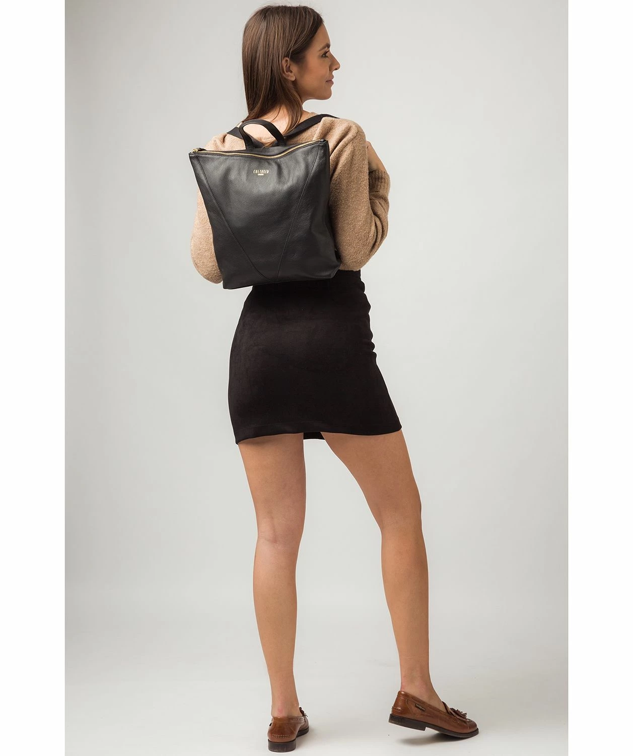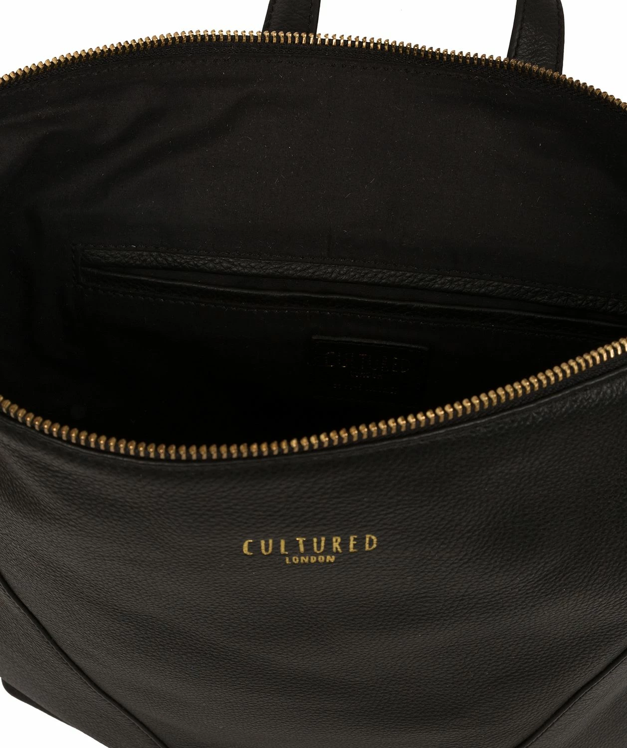 Crafted from premium nappa leather, the ‘Iiford’ backpack from Cultured London’s Eco Collection has a soft to the touch yet durable finish. This stylish accessory features an eye-catching v-shaped design on the front which is complemented by a zip-over top opening up to reveal the storage compartment with two slip pockets, lined with 100% cotton. Adorned with adjustable and matching fabric shoulder straps and a leather carry handle alongside a unique gold foil embossed Cultured London logo and leather charm.