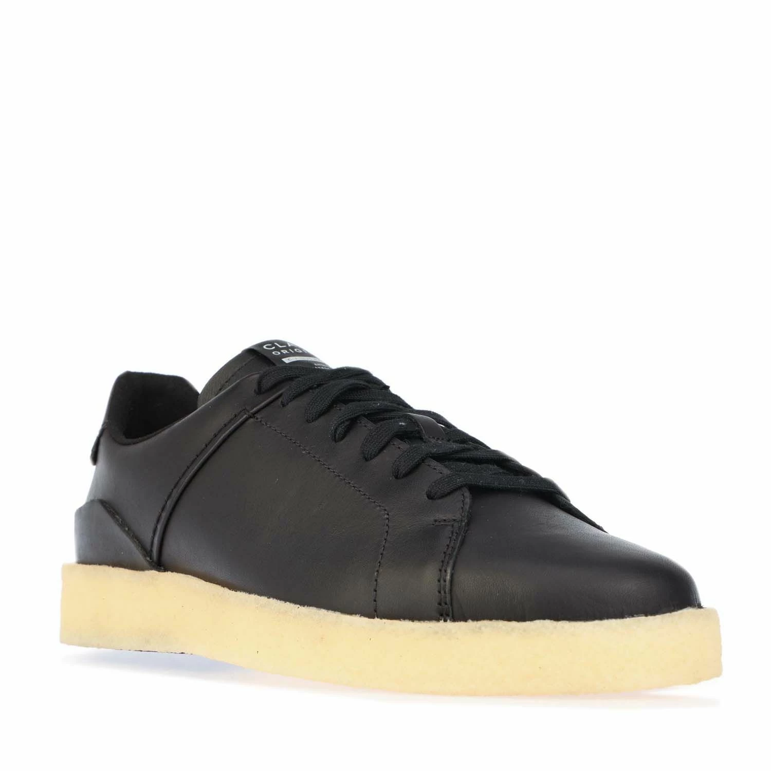 Womens Clarks Originals Tormatch Leather Trainer in black.- Leather upper.- Lace fastening.- 100% recycled tongue lining.- Printed heel script.- Cushioned footbed.- Gold 1825 detailing on the heel.- Natural renewable Forest Stewardship Council® -certified rubber crepe sole.- Leather upper and lining.- Ref:26162060