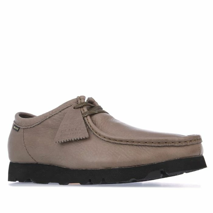 Mens Clarks Originals Wallabee GORE- TEX Leather Shoes in olive. –Leather upper. – Lace-up construction. – Moccasin construction and structural silhouette. – Waterproof. – Vibram® Sole. – Leather upper Leather lining Synthetic sole. – Ref: 26154799