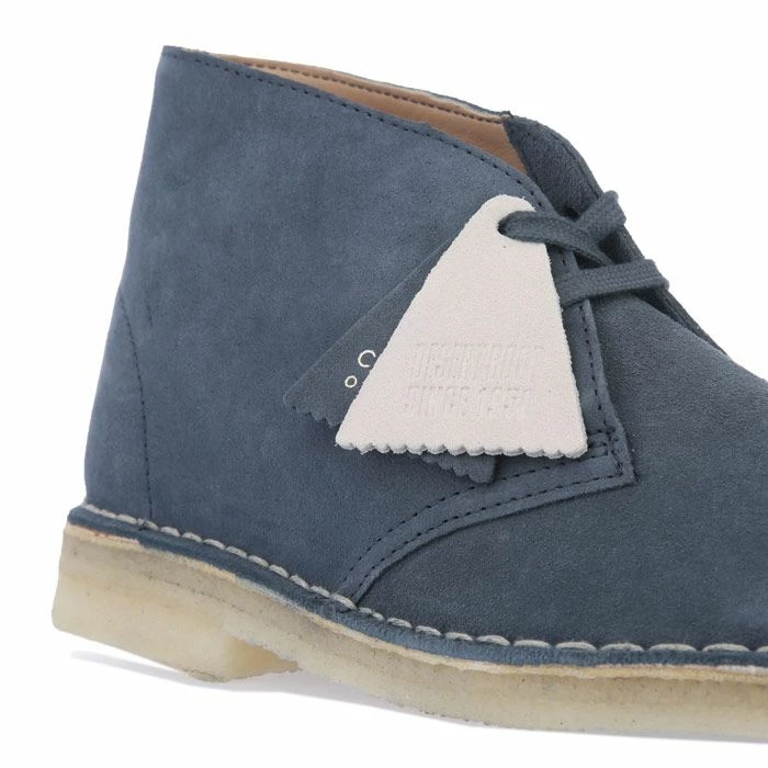 Womens Clarks Originals Desert Boots in blue.- Suede upper.- Unfussy lace fastening.- Forest Stewardship Council®-certified crepe sole.- Leather and Suede upper Leather lining.- Ref: 26156691